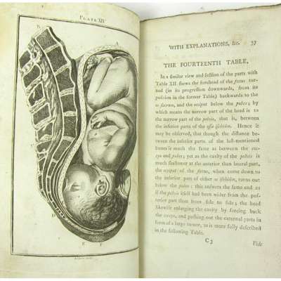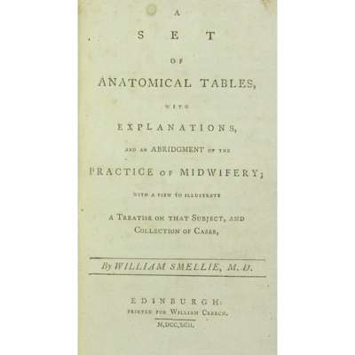 A set of Anatomical Tables, with Explanations, and an Abridgment of the Practice of Midwifery. Edinburgh: W. Creech, 1792. 8vo, 40 engraved plates, modern half cloth retaining original boards, some dust-soiling, small stain to extreme edge of fore-margins