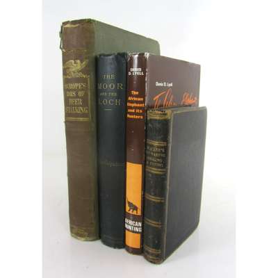 Art of Fly Making, &c. London: George Nichols, 1855. 8vo, black morocco gilt, 18 chromolithographed plates, gift inscription to fly leaf, some soiling, rubbing on spine; Colquhoun, John The Moor and The Loch. Edinburgh, 1888. 8vo, original green cloth, with accompanying letter from Dr. Alan Lyell, presenting Denis D. Lyell's copy of the book to the recipient, Denis D. Lyell's name in pencil to endpaper, cancelled bookplate of Dundee University Club, some wear; Scrope, William The Art of Deer Stalking. London: John Murray, 1839. 8vo, original green cloth gilt with internal and external wear; and another (4)