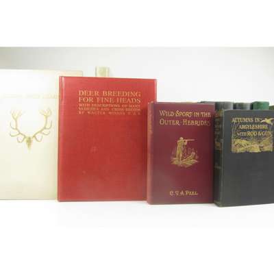 Field Sports of the North of Europe. 1830. 2 volumes, plates, half vellum; Millais, J.G. The Wildfowler in Scotland. 1901. 4to, plates, half vellum, t.e.g., vellum slightly spotted; Grimble, A. Shooting and Salmon Fishing. 1892; Hawker, P. Instructions to Young Sportsmen. 1844; Scrope, W. Days of Deer-Stalking. 1847, additional engraved title, head of spine repaired; Speedy, T. Sport in the Highlands and Lowlands of Scotland. 1884; Scrope, W. Days and Nights of Salmon Fishing in the River Tweed. 1885; Gathorne-Hardy, A.E. Autumns in Argyleshire with Rod & Gun. 1901; Peel, C.V.A. Wild Sport in the Outer Hebrides. 1901; Sinton, T. By Loch and River. 1910; Grimble, A. The Salmon Rivers of Scotland. 1913; Winans, W. Deer Breeding for Fine Heads. 1913. 4to, original red buckram; Wallace, H.F. British Deer Heads. 1913. 4to., No. 293 of 600 copies, original white buckram; Lamond, H. Loch Lomond. 1931, dustwrapper; and 2 others (1 defective) (17)