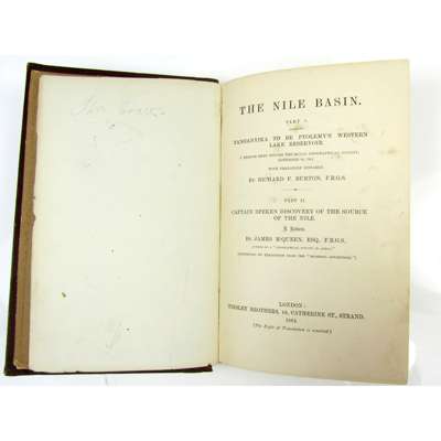 The Nile Basin. London: Tinsley Brothers, 1864. First Edition. 8vo (133 x 206mm), 3 maps, 4pp. adverts. at end, original burgundy cloth, gilt lettering to spine, repaired at head and tail of spine, slight wear to joints, one or two light stains to margins in text , light marks to title and first few leaves, lacking half-title