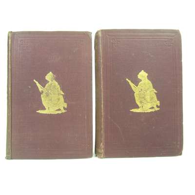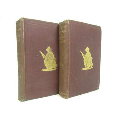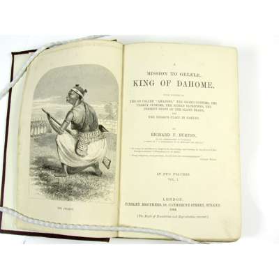 A Mission to Gelele, King of Dahome. London: Tinsley Brothers, 1864. First edition, 2 volumes, 8vo (127 x 205mm.), 2 engraved frontispieces, half-titles, original pictorial dark purple cloth gilt, edges uncut, some fading to backstrips, corners bumped, volume I replacement endpapers, library label to front fixed endpaper of volume II, some light spotting to edges