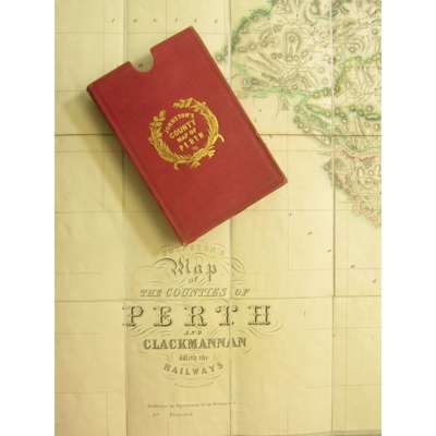 Map of the Counties of Perth and Clackmannan with the Railways. Edinburgh, [c.1840] 110 x 103cm, dissected into 72 rectangles and laid-down onto linen, hand-coloured in outline, original red cloth gilt box with later label to one edge, some very slight offsetting, case a little worn and soiled