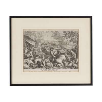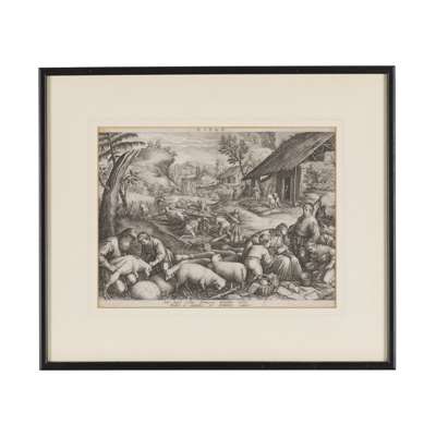 The Four Seasons: Aestas,Ver,Autumnus & Hyems, after 1580, engraved area each c.21 x 29cm, framed and glazed, a few creases and neat closed repairs, some tears and repairs with loss to lower edge of Autumnus (4)