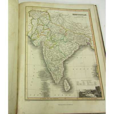 A General Atlas, containing Maps illustrating some important periods in Ancient History, and distinct Maps of the Several Empires, Kingdoms and States in the World. Edinburgh: John Thomson &c. for Baldwin Cradock & Joy, London & John Cumming, Dublin, [1823]. 4to., engraved title, 2 engraved tables, 44 maps hand-coloured in outline, 3 double-page, old half calf, several hand-coloured engravings in the text, a few lightly stained, chiefly in margins