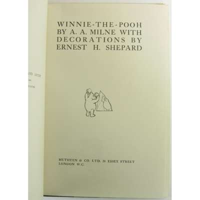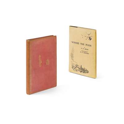 Winnie-the-Pooh. London: Methuen & Co., 1926. First edition, 8vo, original green cloth gilt, dust-jacket, some very light crease marks to some pages, offsetting of Eeyore onto p.45, occasional light foxing and very slight soiling throughout, dust-jacket neatly repaired; [Idem] The House at Pooh Corner. London: Methuen & Co., 1928. First edition, 8vo, original pink cloth gilt, repair to contents page, endpapers browned, some fading and soiling to covers (2)