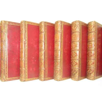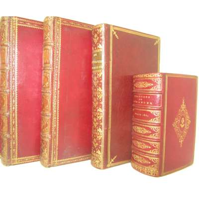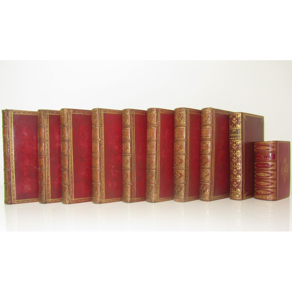 Recueil de lettres de Madame la Marquise de Sévigné, à Madame la Comtesse de Grignan, sa fille. Paris: par la Compagnie des Librairies, 1774. 8 volumes, 8vo, contemporary red morocco, gilt decorative border on covers, spines gilt, a.e.g., slight rubbing at a few corners, spines slightly faded, vols 1 and 2 with light crack down the centre of the spines, signature of Mary Bagot, 1779, in vol. 1 and of Margaret Hay 1802 on titles or half-titles, small Selbourne Library stamp to title or half-title versos; Béranger, P.J. de Chansons. Paris: Perrotin, 1861. 16mo, red morocco gilt by David, a.e.g.; [Kempis, Thomas à] De imitatione Christi. Paris: J. Barbou, 1764. 12mo, 5 engraved plates, contemporary red morocco gilt, a.e.g. (10)