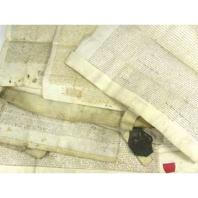 Thirteen 17th century documents, on vellum, one with remains of seal, including