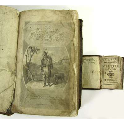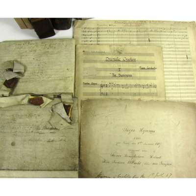 The History of the Parishes of Whiteford and Holywell. London: B & J. White, 1796. 4to., 2 engraved titles and 22 plates, 19th century vellum, binding rather dust-soiled; [Defoe, D.] Robinson Crusoe, Albion Press, J. & J. Cundee, c.1810, very soiled and defective; Epictetus Enchiridion, et cebetis tabula. Leiden, Ex Officina Plantiniana Raphelengii, 1616. 16mo, contemporary calf, fore-margins worn at beginning, puncture mark to spine; Edwards, Lionel My Hunting Sketch Book. 1928- 30. 2 volumes; Forrad-on! 1930, rubbed; My Irish Sketch Book. 1938; Meads, F. They Meet at Eleven. 1956, illus. by Lionel Edwards, original cloth or original cloth-backed boards; Indenture 1604, between John Hewson Irinkston in Suffolk, Reginald Burroughe of St. Johns in Suffolk and Cuthbert Garner, and Sir John Deane, Knight, relating to the sale of the Manor or Lordshippe of ?Shellond in Suffolk, vellum, 3 seals attached; Holbrooke, Joseph Music manuscript. Dramatic overture "1914" (for Brass Band), 32pp., oblong folio, with note "Broadcast 1926-1928-1934 etc.", signed by Holbrooke on first leaf; Dramatic Overure "Clive of India", 12pp., 4to., slightly dust-soiled; with German music manuscript "Lieges Hymnus 1866 zur feir des 1 Januar 1867, composorit von Seiner Koniglichen Hoheit dem Prrinzen Albricht (Sohn) von Preusen", oblong 4to., 15pp., wrapper detached; Indenture, [Bradford, Yorkshire] between Samuel Dawson, Joseph & Ely Jowett and William Holden relating to the Rectory of Bradford in the County of York, on vellum, 1780, 58 x 76cm.; Printed Playbill for performance of Der Rosenkavalier, 7 Nov. 1953, 61 x 42.5cm., mounted on board, worn with some loss (quantity)