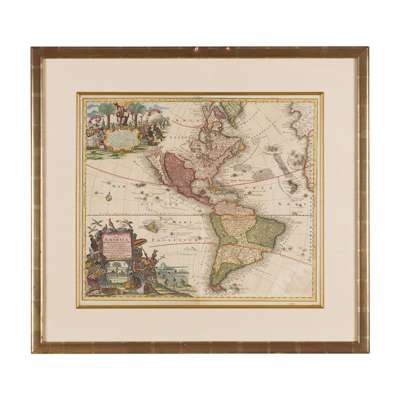 Novus Orbis sive America Meridionalis et Septentrionalis. Augsburg: [c.1730], 49 x 57cm. (engraved area), hand-coloured, framed and glazed, some light browning and slight foxing, a couple of small, discreet repairs