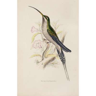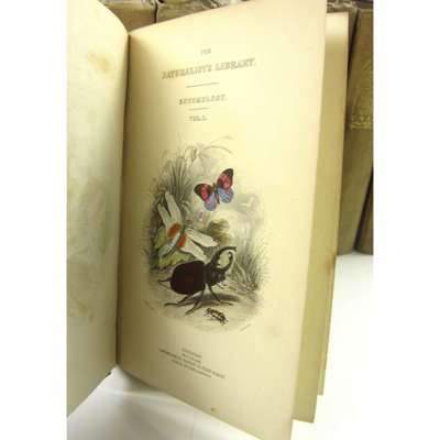 The Naturalist's Library. Edinburgh: W.H. Lizars, 1833-43. 40 volumes only, comprising: Ornithology 1-11; 13-14; Mammalia 1-5; 7; 9-13; Entomology 1-7; Icthyology 1-6 and 2 duplicate volumes, all small 8vo, hand-coloured plates, original purple cloth, spines faded, some loose pages and wear; with Humming-Birds, volume 2. Edinburgh, 1840 [actually 1860]. 8vo, large paper copy, original red cloth; sold not subject to return, four or more plates lacking (40)