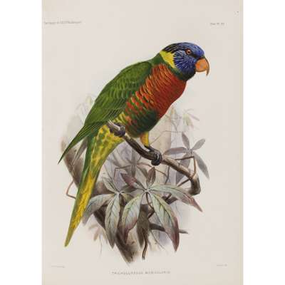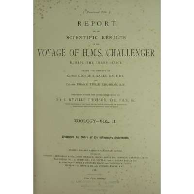 Report on the Scientific Results of the Voyage of the H.M.S. Challenger during the Years 1873-76... Zoology, volume II, parts vii & viii. London: Longmans & Co., 1881. Folio, 60 plates, comprising 30 lithographs relating to corals and 30 hand-coloured bird plates, green cloth gilt, bookplate and stamps of the University of Glasgow Department of Zoology to half-title and title-page, some foxing particularly to initial pages, some slight browning to plate edges and occasional light dust-soiling, hinges splitting, covers and spine rubbed and worn