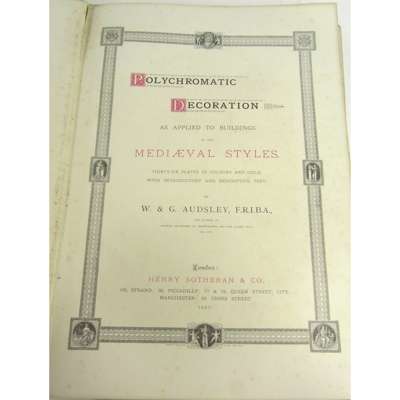 Polychromatic Decoration as Applied to Buildings in the Medieval Styles. London: Henry Sotheran & Co., 1882. Folio, 36 plates, original cloth gilt; Hamerton, Philip Gilbert The Portfolio: London, Seeley, Jackson & Halliday, 1880 and 1883. 2 volumes, folio, 36 & 44 plates respectively, red half morocco (3)