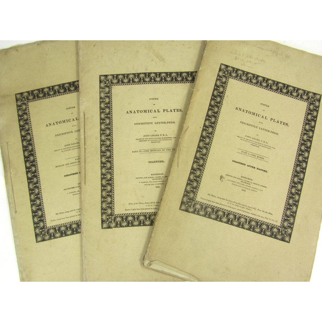System of Anatomical Plates… Edinburgh: Daniel Lizars, 1824. Folio, parts 1-6 only with 54 hand-coloured plates (a full set comprises 101 plates) and 2 advertising leaves, original parts in original wrappers, a little soiling, upper wrapper to part ii torn (6)