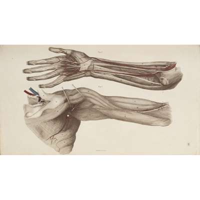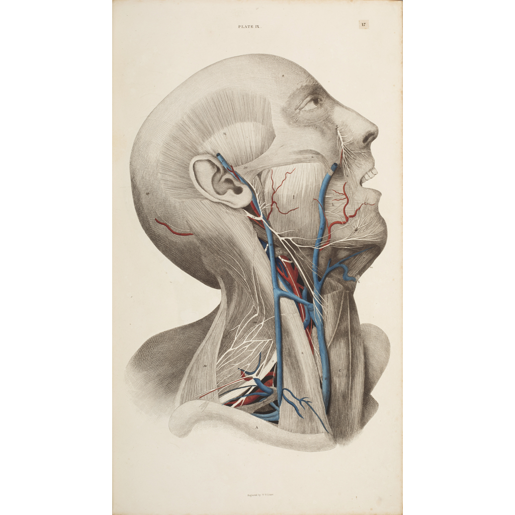 System of Anatomical Plates… Edinburgh: W.H. Lizars, [1824]. Folio, atlas volume only, engraved title, 101 plates, mostly hand-coloured, contemporary half calf, occasional very slight darkening, occasional creasing, endpapers spotted, some rubbing to covers