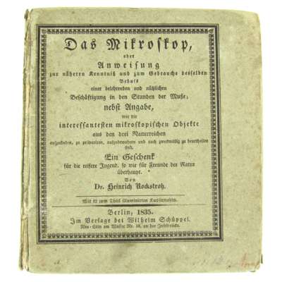 Das Mikroskop. Berlin: Wilhelm Schüpperl, 1835. 8vo, 12 engraved plates, some hand-coloured, original printed boards, some spotting and offsetting, rubbed