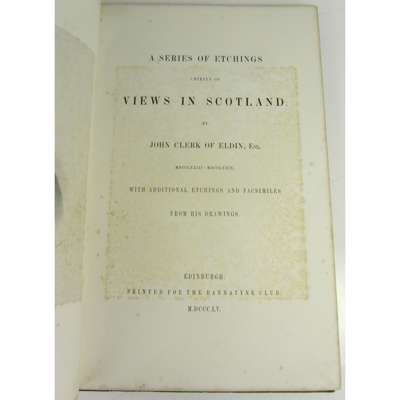 A Series of Etchings, Chiefly of Views in Scotland. Edinburgh: Bannatyne Club, 1855. Folio, portrait and 57 plates (including several tinted lithographs and the two 'additional' plates), contemporary red quarter morocco with original label to upper cover, a little offsetting from portrait to title-page, some rubbing to covers