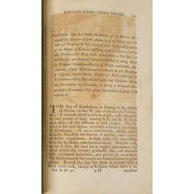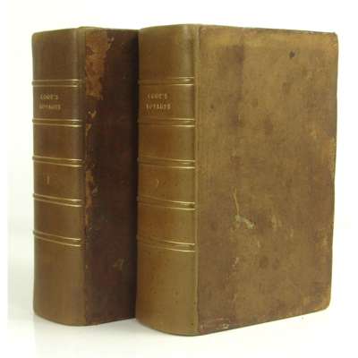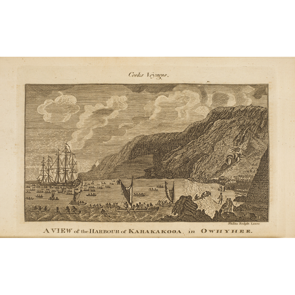 Captain Cook's Voyages Round the World. Newcastle: Printed by M. Brown, 1790. 2 volumes, 8vo, portrait, folding map and 49 plates, contemporary calf rebacked with modern spines, some offsetting and darkening, a little marginal worming to volume 1 and slight worming to boards, front free-endpaper of volume 2 repaired, covers a little rubbed [ESTC N26645] (2)