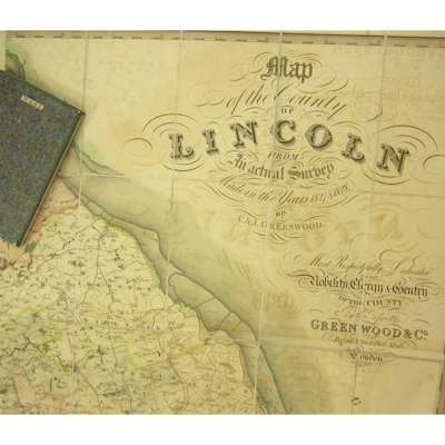 Map of the County of Lincoln from an actual survey, made in the years 1827 & 1828. Greenwood & Co., 1830, engraved map on 2 folding sheets, hand-coloured in outline, dissected and backed on linen, edged with green silk, contemporary calf pull-off case, slight offsetting, case rubbed