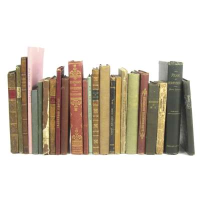 A Concise History of the County and City of Chester. Chester, [1791], 12mo, folding plan, contemporary tree calf, head of spine rubbed; Ward, R. The Matlock, Buxton and Castleton Guide. Derby, 1814. 12mo, 19th century half calf; Broster, John A Walk round the Walls and City of Chester. Chester: for the author, [c.1820]. 12mo, frontispiece, title vignette, original boards, uncut, worn; [Gray, J.H., printer] A Companion to Charnwood Forest. Loughborough, [c.1838], 8vo, folding map, original cloth, slightly rubbed; Mott, F.T. Charnwood Forest. 1868. 8vo, folding map, coloured plates, original cloth; Cathrall, W. The History of Oswestry. Oswestry, [n.d.], 8vo, plates, original red cloth gilt; Wright, T. The Ruins of the Roman City of Uriconium. Shrewsbury, 1859. 12mo, lithographed plates, original cloth with label; Newling, T., printer The Shrewsbury Guide. Shrewsbury, 1808. 12mo., frontispiece, modern boards; [Price, William, publisher] The History of Oswestry. Oswestry, [c.1820], 8vo, frontispiece, title within woodcut border, woodcuts, contemporary half calf gilt; Robertson, W.H. A Hand-Book to the Peak of Derbyshire. Buxton, [c.1861]. 8vo, folding map, plates, original cloth gilt; Mozley, J. & C., publishers Matlock, Hardwick, South Winfield... Derby, [c.1859], 12mo, original orange cloth; Moore, H. Picturesque Excursions in the High Peak of Derbyshire. Derby, 1819. 8vo, plates, original printed boards, uncut, upper hinge split; Love, B. The Hand-Book of Manchester. Manchester, 1842. 8vo, engraved plates, original green cloth gilt; McNicoll, D.H. Handbook for Southport. 1859. 8vo., coloured plates, original red cloth gilt; Love & Barton, publishers Manchester as it is. Manchester, 1839. 12mo, frontispiece, 10 plates, double-page map, original cloth; Aston, Joseph A Picture of Manchester. Manchester, [n.d.]. 12mo, folding map, woodcuts, original boards, uncut; Moss, W. The Liverpool Guide. Liverpool, 1797. Second edition, 8vo, folding map, errata leaf, contemporary half calf; Murray, James The Travels of the Imagination. 1828. 12mo, portrait, original quarter cloth, rubbed, uncut; Hutton, W. A Description of Blackpool. 1804. Second edition, 8vo, half-title, errata leaf, contemporary half calf gilt; Lytham, History of. "Authorities: Leigh, Carlisle, Ashton, Baines &c., [n.d.]. 8vo, frontispiece, later wrappers; Ferguson, W. Alnwick Castle. Alnwick, 1860. 12mo, original cloth gilt; Thompson, W., publisher Land of Scott. Berwick upon Tweed, [1850]. 12mo., plates, original cloth gilt; Walker, T.D. Facts relative to the Medicinal Properties of the Dinsdale and Croft Sulphur Springs. Darlington, 1835. 12mo, 3 plates, folding plan, original cloth, and 1 other; sold as a collection not subject to return (23)