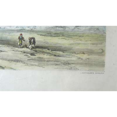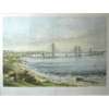 Note: An unrealised design for the Forth Rail Bridge, by the engineer Thomas Bouch. Bouch designed the Tay Bridge, which collapsed in 1879, killing around 70 people. After the disaster, work was halted on the design shown in the lithograph.