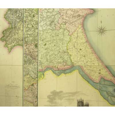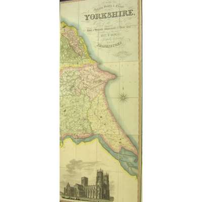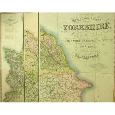 Yorkshire, this map of the County constructed from a Survey commenced in 1817, & Corrected in the Years 1827 & 1828. London: Teasdale & Stocking, 1828. Large engraved map on 3 sheets, each sheet 184 x 75cm., dissected and backed on linen, hand-coloured, edged in green silk, contemporary calf slip-off case, unusually clean
