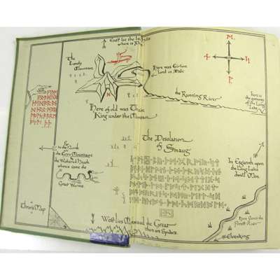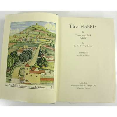 The Hobbit or There and Back Again. London: G. Allen & Unwin, 1937. Second impression, 8vo, 4 coloured plates, original cloth, with "Mother and family. From Sylvia, Christmas 1941" in ink on blank leaf before title, occasional light soiling or spotting, binding worn at edges