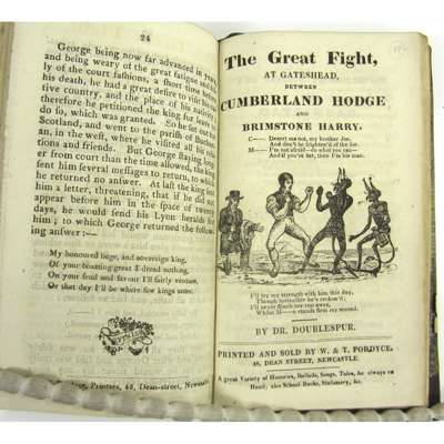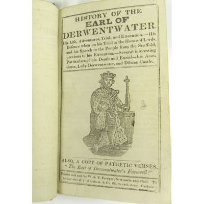 History of the Earl of Derwentwater; History of the Lambton Worm; History of James Allan, the celebrated Northumberland Piper; No. 1-5 The Newcastle Songster; Remarkable & Memorable History of Sir Robt. Bewick; The Long Pack; History of Tynemouth; Jemmy & Nancy or Yarmouth; The Factor's Garland, a pathetic history; The Singular Life and Adventures, and Depredations of David Haggart, the Murderer; History of Stoney Bowes; History of Carlisle.. Gretna Green Excursions; A Full Account of the Dreadful Explosion of Wallsend Colliery; The Witty and Entertaining Exploits of George Buchanan; The Great Fight at Gateshead; The Hermit of Warkworth; History of Prince Charles, bookplates of J. Cresswell & others, 19th century maroon half morocco gilt