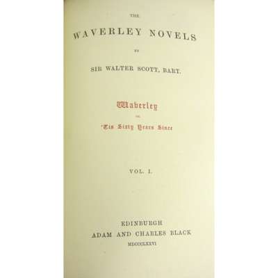 The Waverley Novels. Edinburgh: Adam and Charles Black, 1886-1887. 24 volumes, 8vo, contemporary gilt tooled red morocco by Bicker & Son, London, a little light rubbing to spines, a few small scuffs to covers (24)