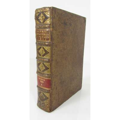 Historia naturalis. Venezia: Reynaldus de Novimagio, 6 June 1483. Folio, 50 lines, Roman letter, capital spaces with guide letters, 18th century sprinkled calf, spine decorated gilt in compartments, red morocco lettering pieces, hinges worn, lacking the initial bank leaf, single worm hole from F5 to the end, neat paper repair to another wormhole in last couple of leaves, otherwise a very good clean copy with good margins (308mm x 205mm)
