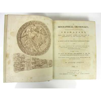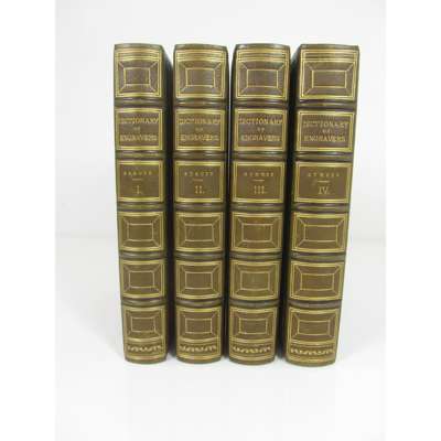A Biographical Dictionary containing an Historical Account of all the Engravers from the Earliest Period … to the Present Time and a Short List of their most Esteemed Works with Ciphers, Monograms, and Particular Marks, used by each master … to which is prefixed, An Essay on the Rise and Progress of the Art of Engraving, both on Copper and on Wood. London: Robert Faulder, 1785. First edition, 2 volumes, extended to 4, 19 original (of 20?) plates of which 2 are hand coloured, and extra illustrated by some 450 additional engravings, mezzotints, etchings, prints, portraits, etc. (mostly mounted, but with some loosely inserted), later full green morocco, gilt panelled, by Andrew Grieve, a.e.g (4)