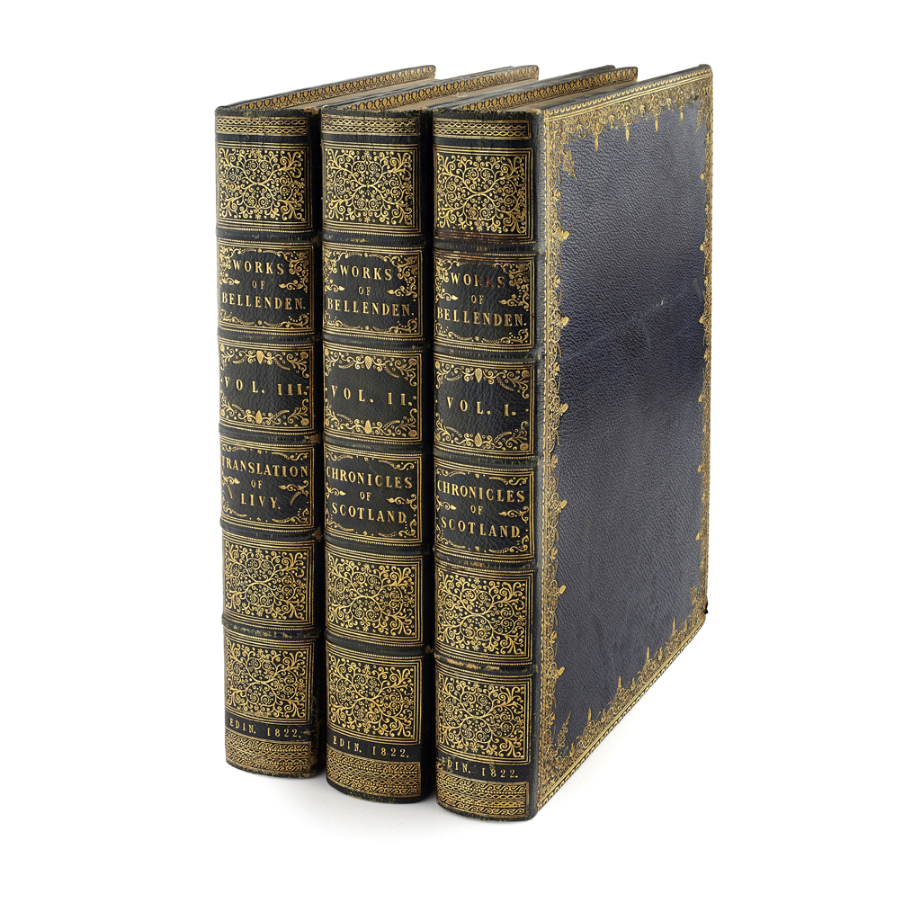 Works. Edinburgh: W. and C. Tait, 1821-1822. 3 volumes, 4to, large paper copy, blue morocco gilt, a little darkening and some rubbing to covers (3)