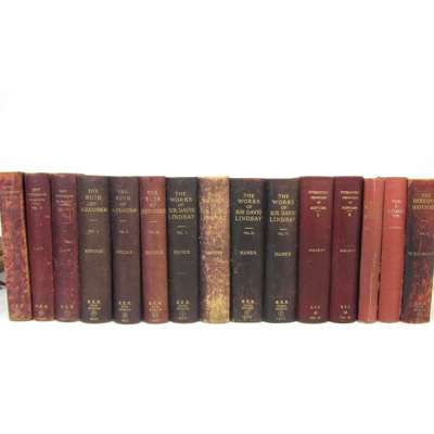 including The Original Chronicle of Andrew of Wyntoun. 1914. 6 volumes, some original morocco-backed cloth, many rebacked with cloth, some rubbed, more modern volumes original cloth, some with bookplate on endpaper of the Dictionary of the Older Scottish Tongue (Scottish Dictionaries Joint Council Library), no library stamps noticed; sold not subject to return
