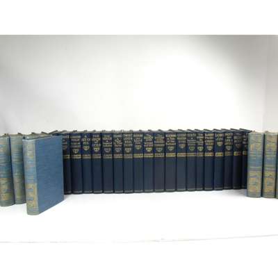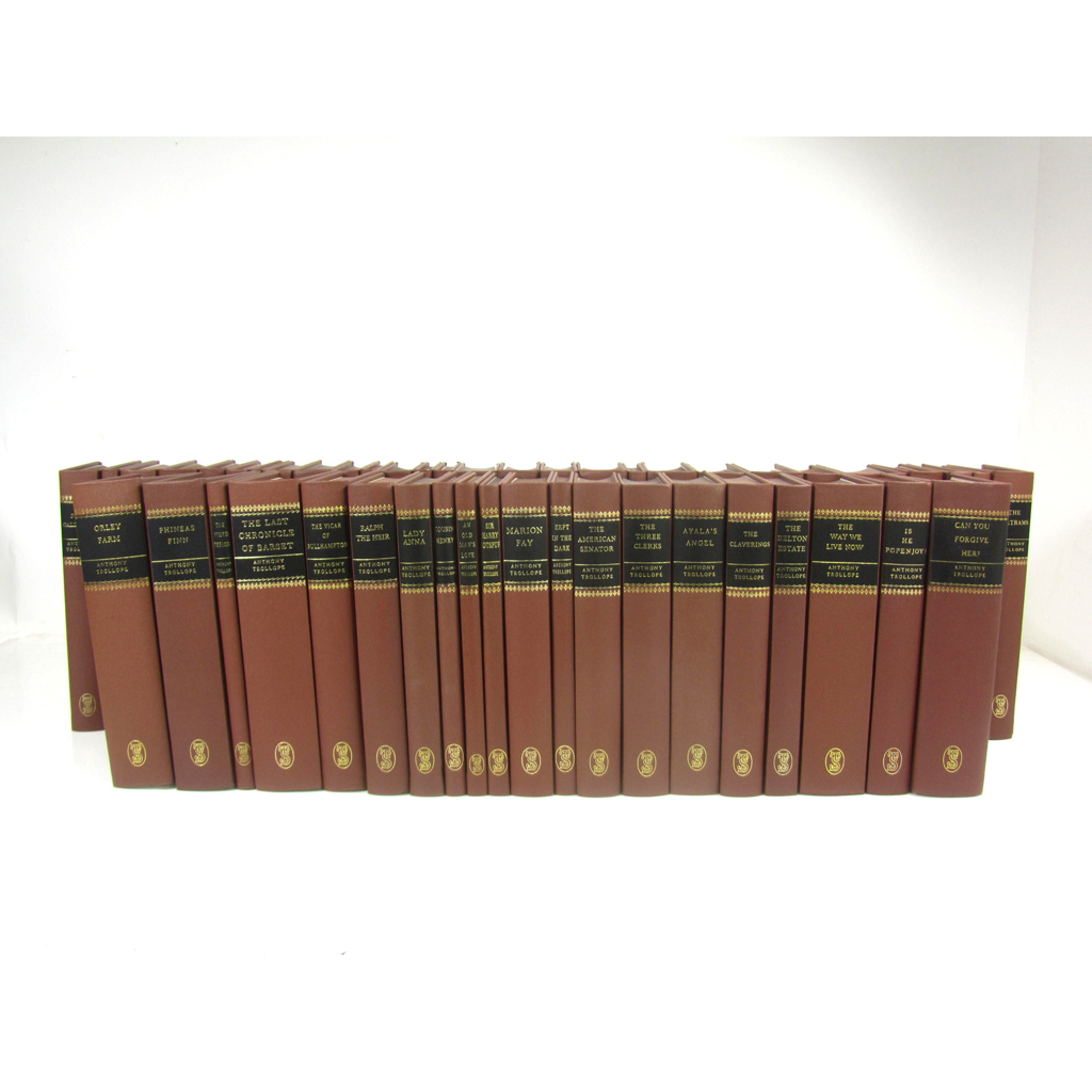 'Eliot, George' [Mary Anne Evans] The Mill on the Floss; Adam Bede; Romola; Silas Marner, The Lifted Veil and Brother Jacob; Felix Holt; Middlemarch; Daniel Deronda; The Spanish Gypsy; Impressions of Theophrastus Such; all Edinburgh: William Blackwood and Sons, 1901. 9 volumes only (of 10) of the Library edition, 8vo, blue cloth gilt; Conrad, Joseph Works. Edinburgh: John Grant, 1925. 20 volumes, 8vo, blue cloth gilt, facsimile signature stamps; Trollope, Anthony Novels. London: Trollope Society, 1989-99. 48 volumes, 8vo, brown cloth; sold not subject to return (77)