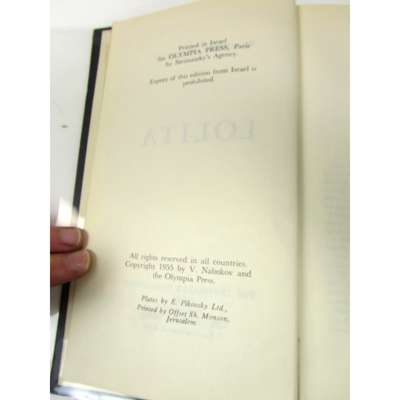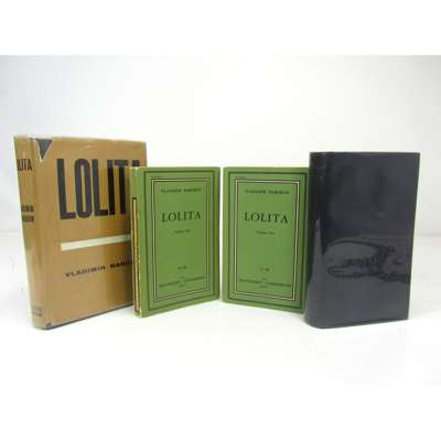 Lolita. Paris: The Olympia Press (printed in Israel), [n.d. but 1955?] 8vo, 2 parts in one, original dark-blue cloth; [Idem] Lolita. London: Weidenfeld and Nicolson, 1959. First UK edition, 8vo, original cloth, dust-jacket with a few tears, ownership signature to free-endpaper; [Idem] Lolita. Paris: The Olympia Press, 1959. 2 volumes, third printing, original green paper wrappers (4)