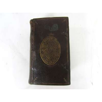 He kaine diatheke. Novum Testamentum. Leiden: ex off. Elzeviriana, 1633. 12mo., title-page in red and black, contemporary morocco, boards with gilt rules and corner ornaments and with central oval arabesque ornament, small stamp of an elephant head with a bunch of arrows held by its trunk on the upper board, a.e.g., lacking clasps
