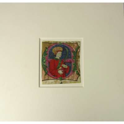 Italy, mid 15th century, showing a saint holding a palm leaf, c.11 x 9cm, delicately mounted