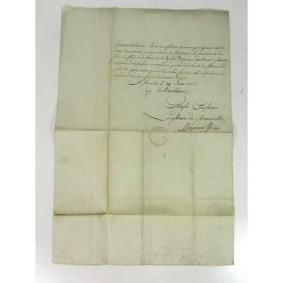 Note: A British major during the Napoleonic wars, Sir Hudson Lowe is known for his position of governor of Saint Helena and as the custodian of Napoleon Bonaparte during his exile on the island. This document, written by the city of Marseille honouring Hudson Lowe, was written only seven days before he was appointed to the position of custodian, and demonstrates the high esteem in which he was held.