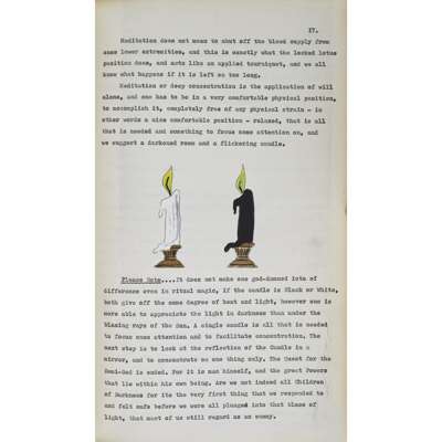 The three books included in this lot would seem to be copies of Pace's works, quite possibly created by Pace. A manuscript copy of the "Necrominion" is referred to by Ford as a "...handwritten fully illustrated grimoire...", and Pace did present his teachings at Wiccan meetings in the 1970s. It has been said that Pace was a talented artist, who produced magical books (such as these), and some sources claim that Led Zeppelin guitarist, Jimmy Page, commissioned Pace to paint murals in the home on Loch Ness, which Page purchased from Aleister Crowley.