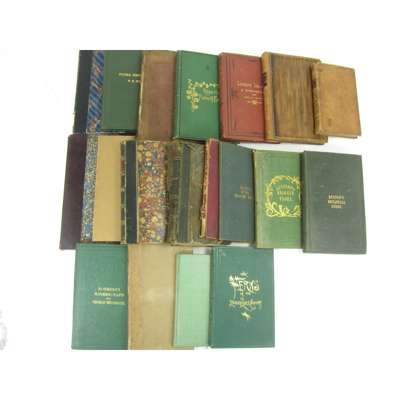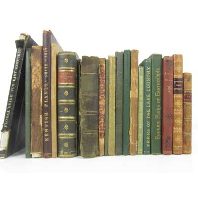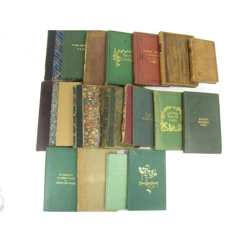 Flora Tonbrigensis, or a Catalogue of Plants growing Wild in the Neighbourhood of Tonbridge Wells. 1816. hand-coloured engraved plates, contemporary calf, rebacked, corners rubbed; Pownall, Henry Some Particulars relating to the History of Epsom. Epsom, 1825, hand-coloured frontispiece & 5 plates, original cloth, plates foxed, worn; Smith, George Edwards A Catalogue of Rare or Remarkable Phaenogamous Plants, collected in South Kent. 1829. 6 hand-coloured plates, later wrappers; another copy, 5 (of 6) hand-coloured plates, later half morocco, original wrappers bound in, rubbed; Hargrove, E. The History of the Castle, Town and Forest of Knaresbrough. York, 1782, 12mo, plates, contemporary calf; Luxford, George A Flora of the Neighbourhood of Reigate, Surrey. 1838, 8vo, folding map, original cloth, rubbed; Luxford, G. Another copy, interleaved & extensively annotated, folding map, half calf, very worn, covers detached; Cowell, M.H. A Floral Guide for East Kent. Faversham, 1839, map, half morocco, 2 leaves repaired, worn; Babington, Charles C. Primitae Florae Sarnicae, or an Outline of the Flora of the Channel Islands. 1839, original quarter cloth, rubbed; [Hayling Island] The Guide to Haying Island. Hayling, [c.1843], 8vo, map, plates, half calf, worn; Buxton, Richard A Botanical Guide to the Flowering Plants, Ferns, Mosses and Algae... within Sixteen Miles of Manchester. 1849, original cloth; Cullen, W.H. Flora Sidostiensis, or a Catalogue of the plants indigenous to the Vicinity of Sidmouth. Sidmouth, 1849, contemporary cloth; Lees, Edwin The Botany of the Malvern Hills. [c.1850], inscribed "from the author", original cloth; Ravenshaw, Thomas F. A New List of the Flowering Plants and Ferns growing wild in the County of Devon. 1860, inscribed "from the author" on endpaper, original cloth; Paley, F.A. A List of Four Hundred WIld Flowering Plants being a Contribution to the Flora of Peterborough. Peterborough, 1860, later cloth; Brewer, J.A. Flora of Surrey. 1863, 2 maps in pockets, contemporary half calf, annotated, slightly rubbed; Linton, W.J. The Ferns of the English Lake Country. 1865, original cloth; Gissing, T.W. Materials for a Flora of Wakefield. 1867, presentation copy "With Compts. of the author, To the Editor of the Wakefield Free Press", original cloth;Roper, F.C.S. Flora of Eastbourne. 1875, original cloth, extensively annotated; Chanter, J.R. Lundy Island. [pc.1877], folding map, original cloth; Lobley, J.L. Hampstead Hill. 1889, plates, later cloth; Lester-Garland, L.V. A Flora of the Island of Jersey. 1903, folding map, original cloth; sold not subject to return