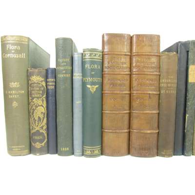 The Natural History of the County of Stafford. 1844; Lloyd, G.N. Botanical Terminology. Edinburgh, 1826, later cloth; Williams, Robert The History and Antiquities of the town of Aberconwy. Denbigh, 1835, original quarter cloth, worn; [Gray, Edward] The History and Antiquities of Newbury... Speenhamland, 1839, later quarter morocco, slight loss to folding map; Cumming, Joseph G. The Isle of Man. 1848, lithographed plates, Martin, George A. The Undercliff of the Isle of Wight. 1849, folding frontispiece; North, I.W. A Week in the Isles of Scilly. Penzance, 1850, lithographed plates, frontispiece loose, binding worn; Hooker, J.D. Himalayan Journals. 1854. Volume 1 only, plates, original cloth, worn; Deakin, Richard Flora of the Colosseum of Rome. 1855; Grindon, L.H. The Manchester Flora. 1859; Buxton, Richard A Botanical Guide to the Flowering Plants... within Eighteen Miles of Manchester. 1859; Stark, R.M. A Popular History of British Mosses. 1860, coloured plates, some spotting; Ullyett, H. Rambles of a Naturalist round Folkestone. Folkestone, 1880; Briggs, T.r. Archer Flora of Plymouth. 1888, map; Griffith, John E. The Flora of Anglesey & Carnarvonshire. Bangor, [1895]; Hanbury, F.J. Flora of Kent. 1899, upper hinge broken; Davey, F. H. Flora of Cornwall. Penryn, 1909; [Hampstead] Hampstead Heath, its Geology and Natural History. 1913; Farrer, Reginald The English Rock-Garden. 1919. 2 volumes, quarter calf, uncut; Lloyd, Francis E. The Carnivorous Plants. Waltham, Mass., 1943, presentation copy inscribed by the author to Sir George Taylor; original cloth, unless noted otherwise