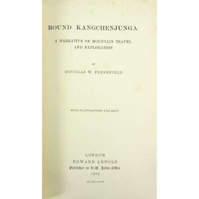 Round Kangchenjunga. London: E. Arnold, 1903. First edition, 8vo, 2 folding maps, folding panorama, 40 plates, original pictorial red cloth, endpapers slightly discoloured, slightly spotted