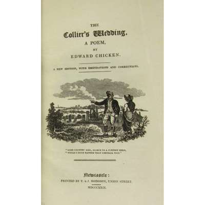 Bewick Gleanings. Newcastle-upon-Tyne, 1886. Small 4to, with "Presentation Copy" leaf signed by Boyd, black morocco, t.e.g., spine lightly faded; Relph, Josiah Poems... embellished with picturesque engravings by Mr T. Bewick. Carlisle, 1798. 8vo, old calf, somewhat spotted & soiled, rebacked with cloth, worn; Percy, Thomas The Hermit of Warkworth. Alnwick: J. Catnach, 1807. Second edition, 8vo, 3 wood-engraved plates, & illustrations, by Bewick, contemporary calf, rebacked retaining spine; Bewick, T. A Memoir. Newcastle, 1862. 8vo, original green cloth, lower boards stained, rubbed; Neasham, G. North Country Sketches... with 13 full-page illustrations and 47 woodcuts by Thomas and John Bewick. Durham, 1893. 8vo, contemporary half buckram; Chicken, Edward The Collier's Wedding. Newcastle: J. Hodgson, 1829. 8vo, 2 woodcuts by Bewick, original wrappers, rebacked with cloth; White, Robert The Tynemouth Nun. Newcastle: T. & J. Hodgson, 1829. 8vo, 2 woodcuts by Bewick, original wrappers; and 8 later books and pamphlets related to Bewick (15)