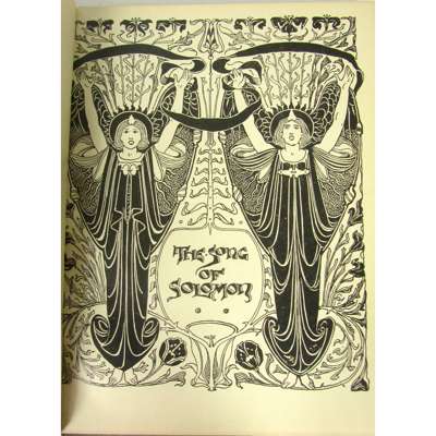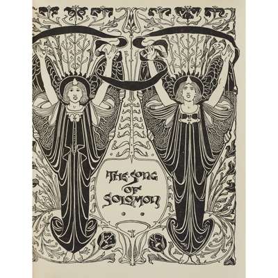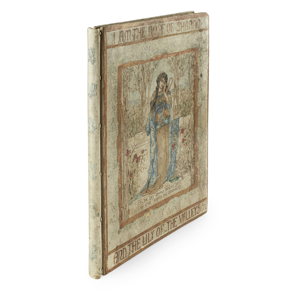 The Song of Solomon, [1897]. 4to, number 84 of 100 copies printed on Japanese paper for the Guild of Women Binders, bookplate of Marion Cooper, original vellum with the upper cover and spine painted by hand showing a shepherdess and the text: "I am the rose of Sharon and the lily of the valleys" "As the lily among thorns so is my love among the daughters"