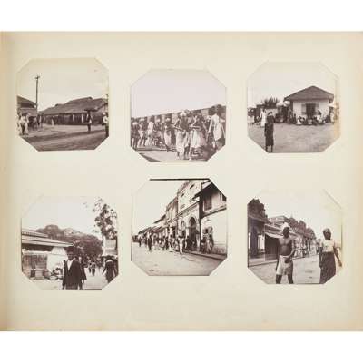Photograph album, comprising 136 photographs, early 20th century, primarily on board the SMS Prinz Heinrich, following Schröder and his wife's journey: leaving Bavaria to board the ship in Napoli, which sets sail for Shanghai stopping off in Malaysia and eventually arriving in Kyoto, many photographs from the ship depict the liner's impressive architecture, and there are also numerous portraits of passengers in which Schröder himself appears (No. 109); including 14 chrome photographs from their time in Japan which are numbered and titled- these were popular photographs for Western tourists of traditional scenes in Kyoto such as image 37 of the Gate of the Chionin Buddhist Temple, and image 10 of the 16th century Buddhist temple of East-Honganji, the largest photograph 25.8cm x 19.9cm