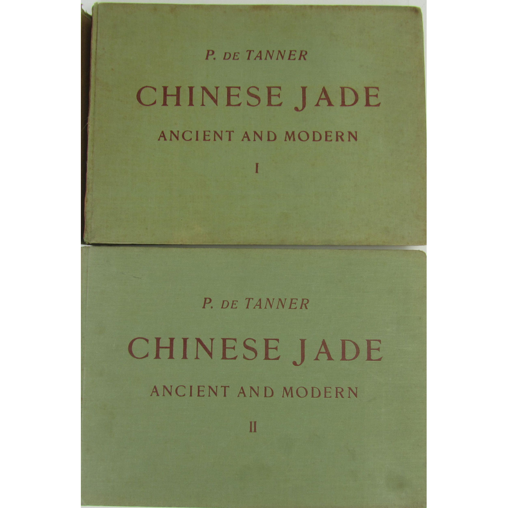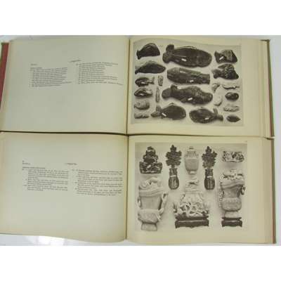 Chinese Jade. Ancient and Modern. Descriptive Catalogue, illustrating the most prominent pieces of a collection of Jade Articles, with Special Reference to Sepulchral Jades. Berlin: D. Reimer/E. Vohsen. 1925. First edition, 2 volumes, oblong folio, 7 coloured folding plates, 117 black & white plates, original green cloth, one joint split, binding marked