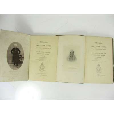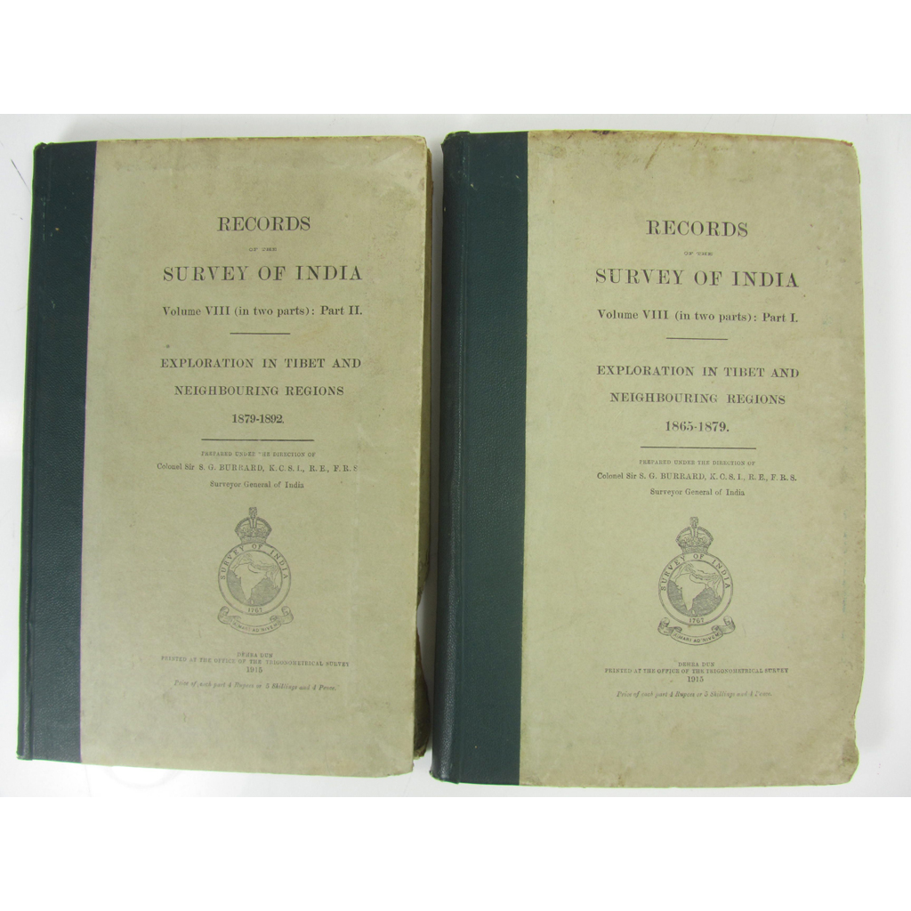 Records of the Survey of India, vol. VIII (in two parts), Part 1 and 2. Dehra Dun, 1915. 2 volumes, folio, frontispieces in both parts, 24 charts in pockets, original cloth backed boards, boards rather worn and chipped