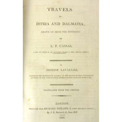 Travels in Istria and Dalmatia; drawn up from the itinerary of L.F Cassas. London: Richard Phillips, 1805. 8vo, map, 6 folding plates, later quarter calf gilt