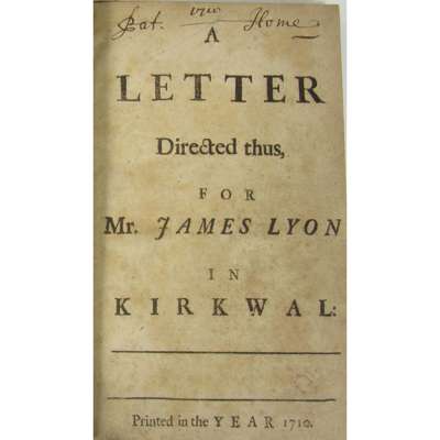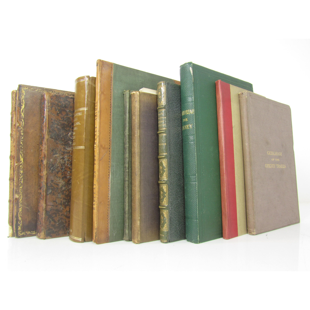 A Letter Directed thus, for Mr James Lyon in Kirkwall. [Kirkwall], 1710. [bound with]Lyon, James A Short Account of the Divine Original of Episcopacy... being an Answer to a Letter from Mr James Sands in Birsay. [Kirkwall], 1710. 2 works in one volume, 8vo, early 19th century calf, some browning, rubbed, boards detached; Vedder, David Orcadian Sketches, Legendary and Lyrical Pieces. Edinburgh, 1832, 12mo, contemporary calf, bookplate of John M. Slater of Kirkwall; Weld, C. R. Two Months in the Highlands, Orcadia and Skye. 1860. 8vo, 4 chromolithographed plates, later quarter calf, slightly spotted; Edmonston, Thomas A Flora of Shetland. Aberdeen, 1845. 12mo, original cloth, binding slightly soiled; [Extract] Barclay, Dr. Remarks on some parts of the Animal that was cast ashore on the Island of Stronsa, September 1808. 28pp.,3 plates (2 coloured), half calf; [Masters, J., publisher] Ecclesiological Notes on the Isle of Man, Ross, Sutherland and the Orkneys. 1848, 12mo., original cloth; Johnstone, James The Norwegian Account of Haco's Expedition against Scotland. 1882. 12mo, number 216 of 250 copies, grey half morocco, t.e.g.; Balfour, David Odal Rights and Feudal Wrongs. A Memorial for Orkney. 1860. 8vo, original green cloth; d'Arville, Nicholas The Navigation of King James I round Scotland, the Orkney Isles.. Glasgow, 1819. 12mo, [extracted from larger work], quarter cloth; Traill, William A Genealogical Account of the Traills of Orkney. Kirkwall, 1883. 8vo, 3 plates, original cloth (10)