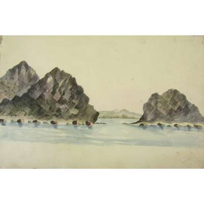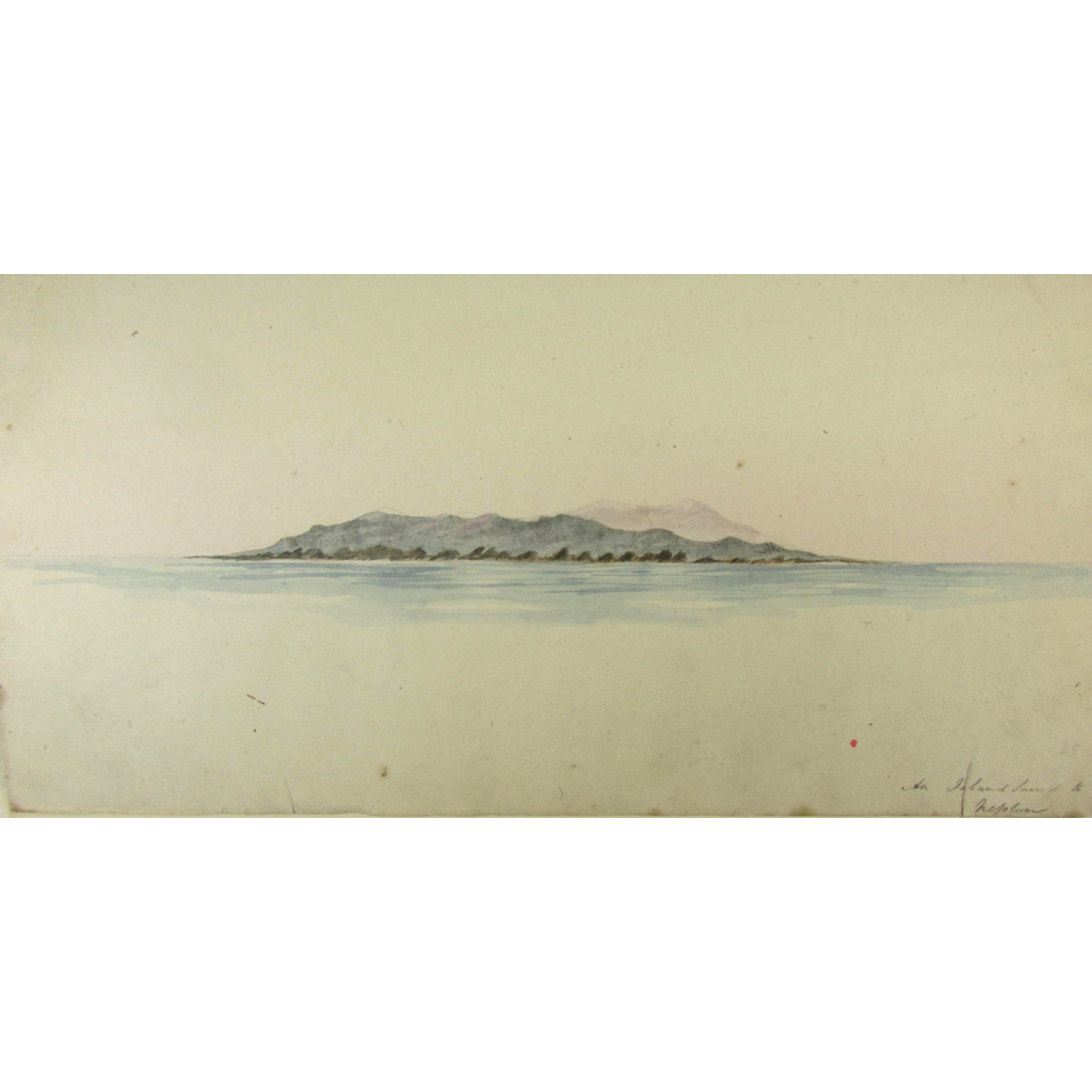 Note: A note, dated 1959, on the front board states "Persian Gulf, Islands in the East Indies, Mauritius, Trincomalee Ceylon, St Helena, Island Penang straits of Sumatra, and many others, painted by, it could be, Robert Livie Mitchell, or Hugh Mitchell. I know that Basil Hall visited St. Helena in 1817 and its is a very funny thing that where [sic] ever Hugh Mitchell was Basil Hall was also there".