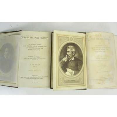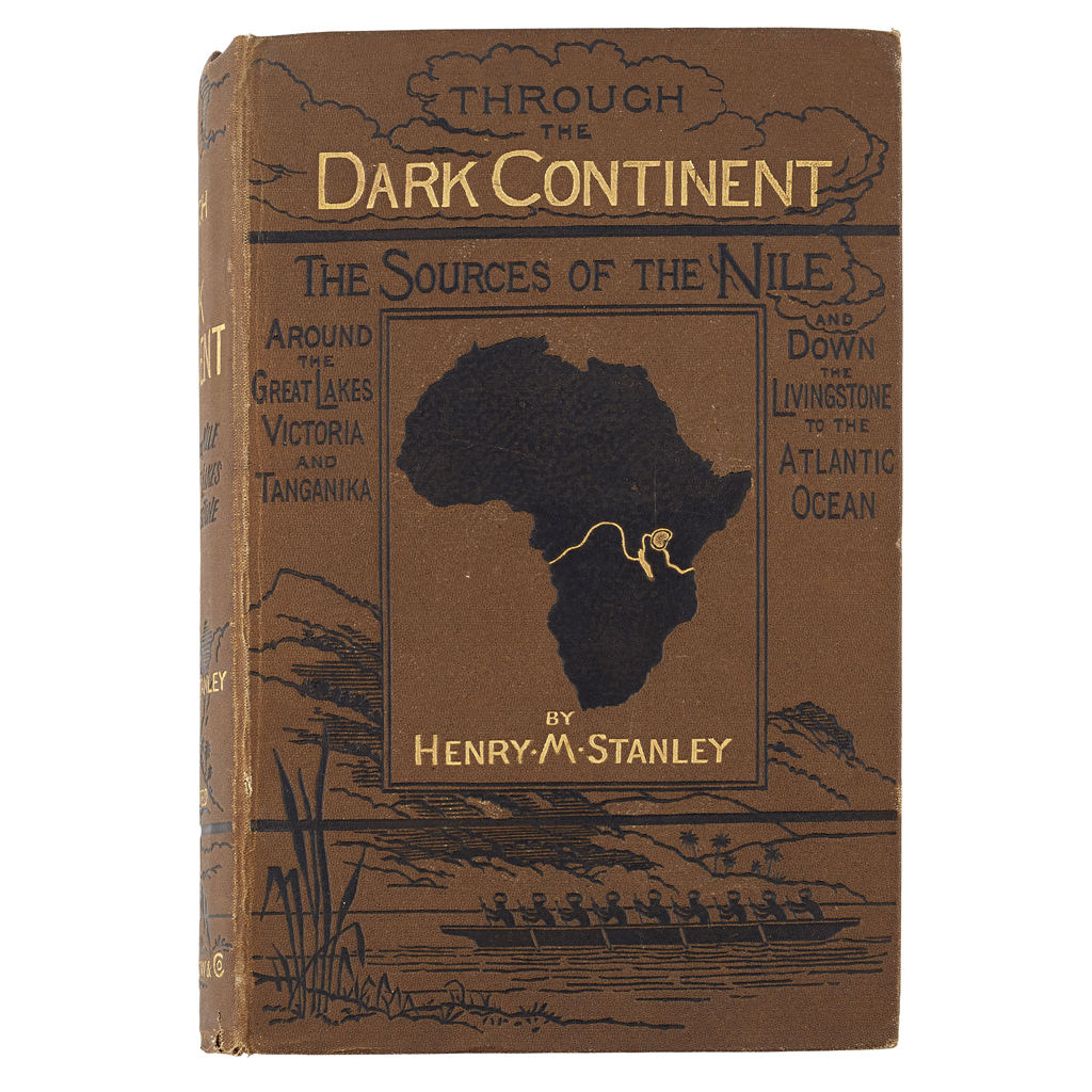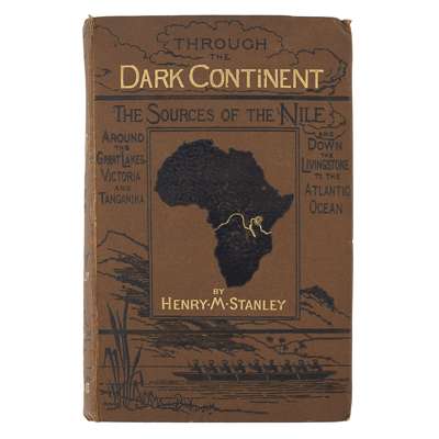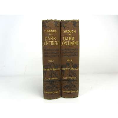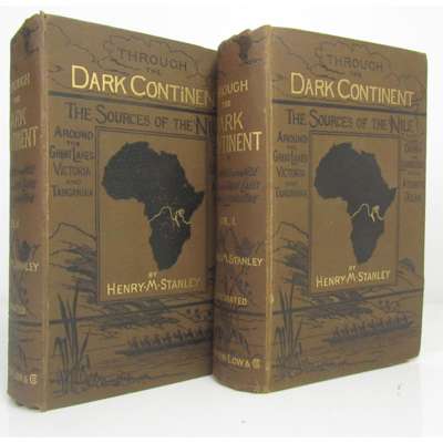 Through the Dark Continent. London: Sampson Low [&c.], 1878. First edition, 2 volumes, 8vo, 34 plates, 10 maps (2 folding in pockets), illustrations, original brown pictorial cloth, a few spots, lower hinge of volume 1 broken, Publisher's note in volume 1 detached, maps in pockets with small split at some folds